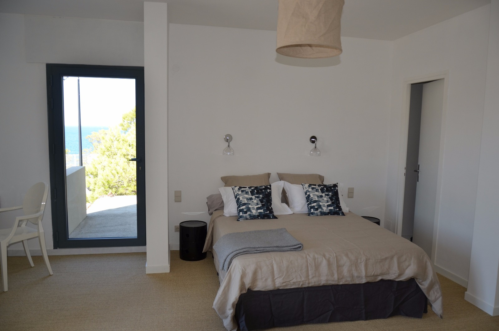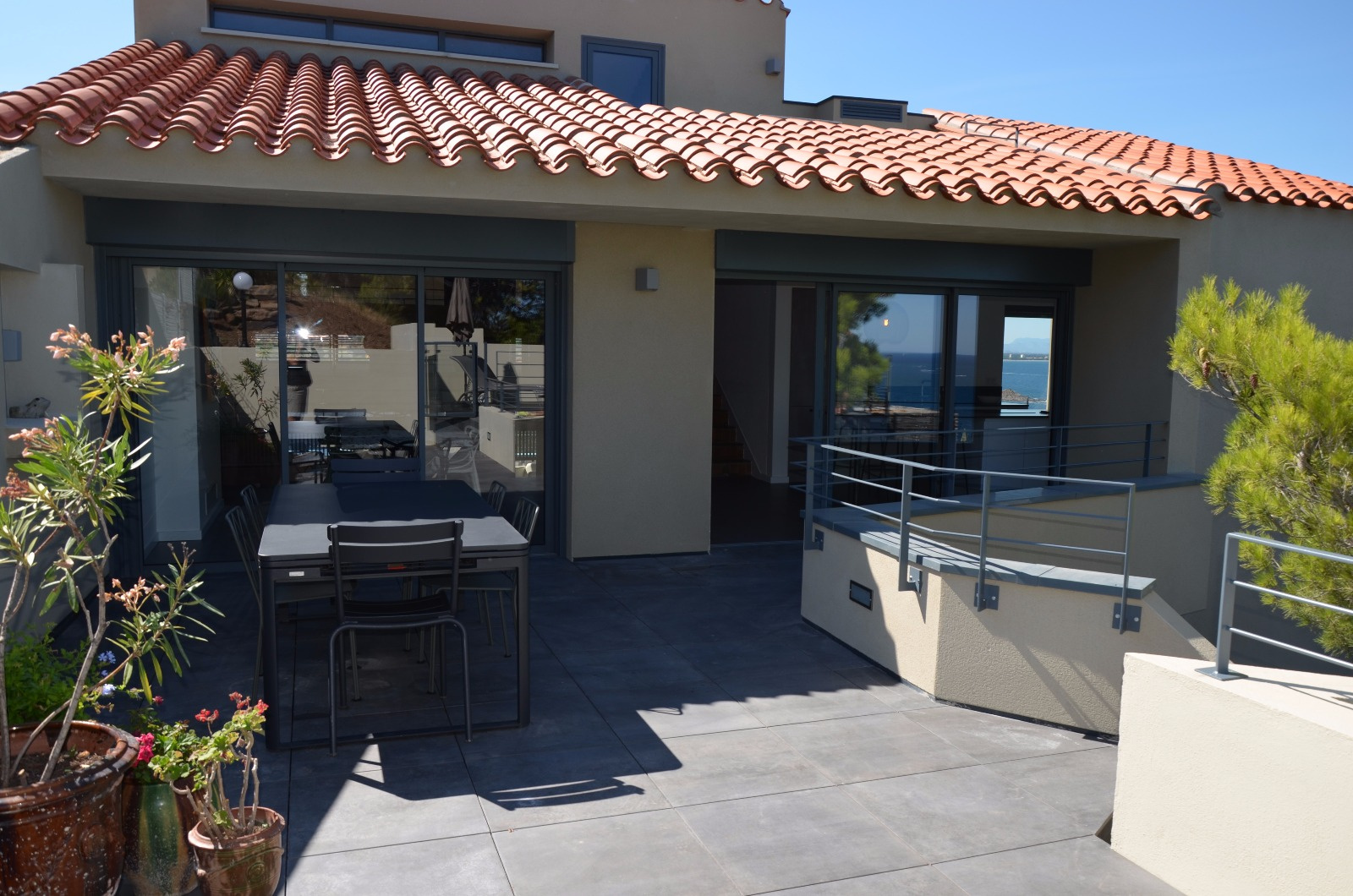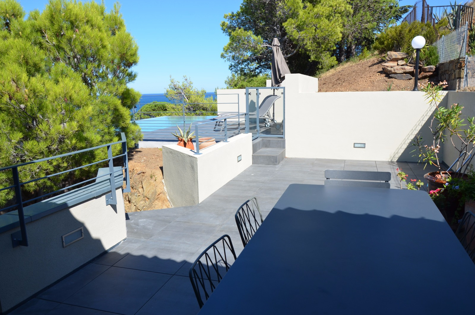 Nombreuses terrasses avec vue mer, jardin arboré d'essences méditerranéennes, grand garage pouvant acceuillir 3 véhicules. Climatisation dans la cuisine et la salle à manger. Internet. Animaux non autorisés. Le couchage est constitué de 2 lits en 160 cm, 1 lit en 140 cm et 2 lits en 90 cm.