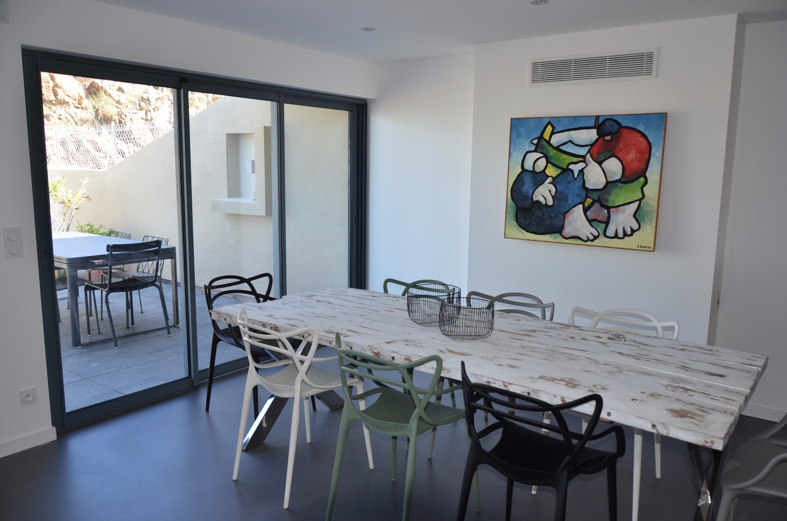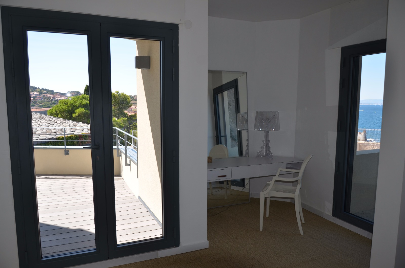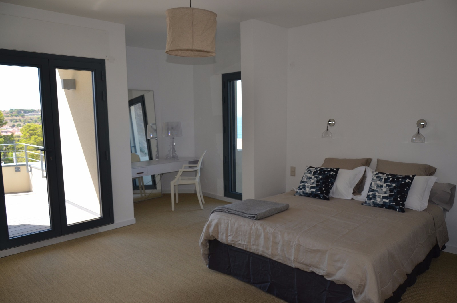 Nombreuses terrasses avec vue mer, jardin arboré d'essences méditerranéennes, grand garage pouvant acceuillir 3 véhicules. Climatisation dans la cuisine et la salle à manger. Internet. Animaux non autorisés. Le couchage est constitué de 2 lits en 160 cm, 1 lit en 140 cm et 2 lits en 90 cm.