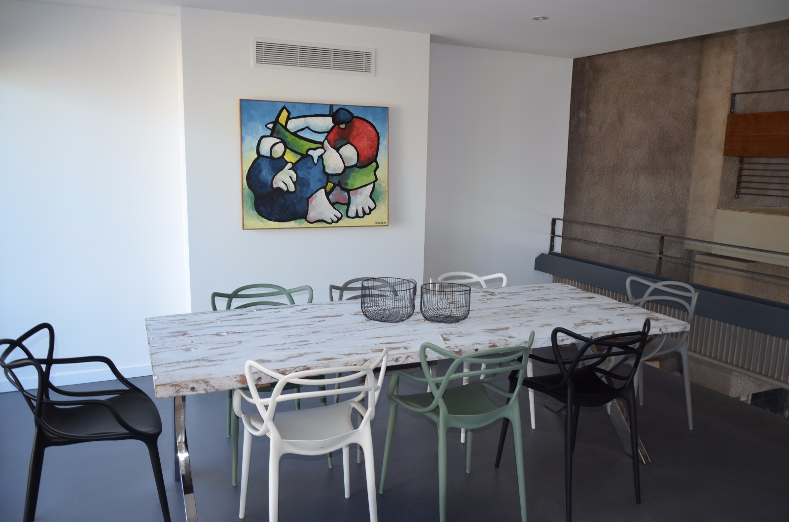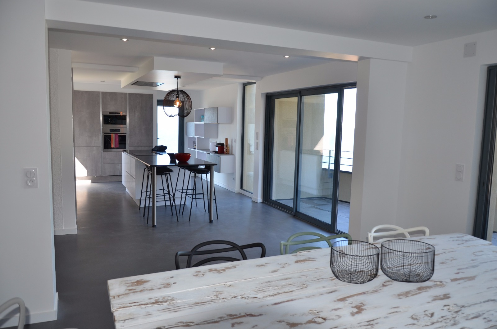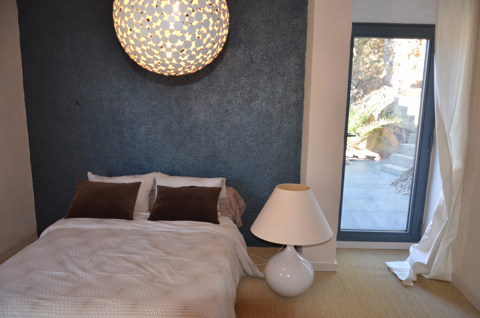 Elle dispose aux 1 et 2 ème niveaux de 4 chambres dont 2 avec une salle d'eau (douche), une salle de bains, 2 wc séparés. Aux 3 ème et 4 ème niveaux une cuisine entièrement équipée ouverte sur la salle à manger et donnant sur une belle terrasse et la piscine à débordement, un grand salon très agréable ouvrant sur une terrasse pour contempler le paysage, une mezzanine offrant un coin détente et de lecture.