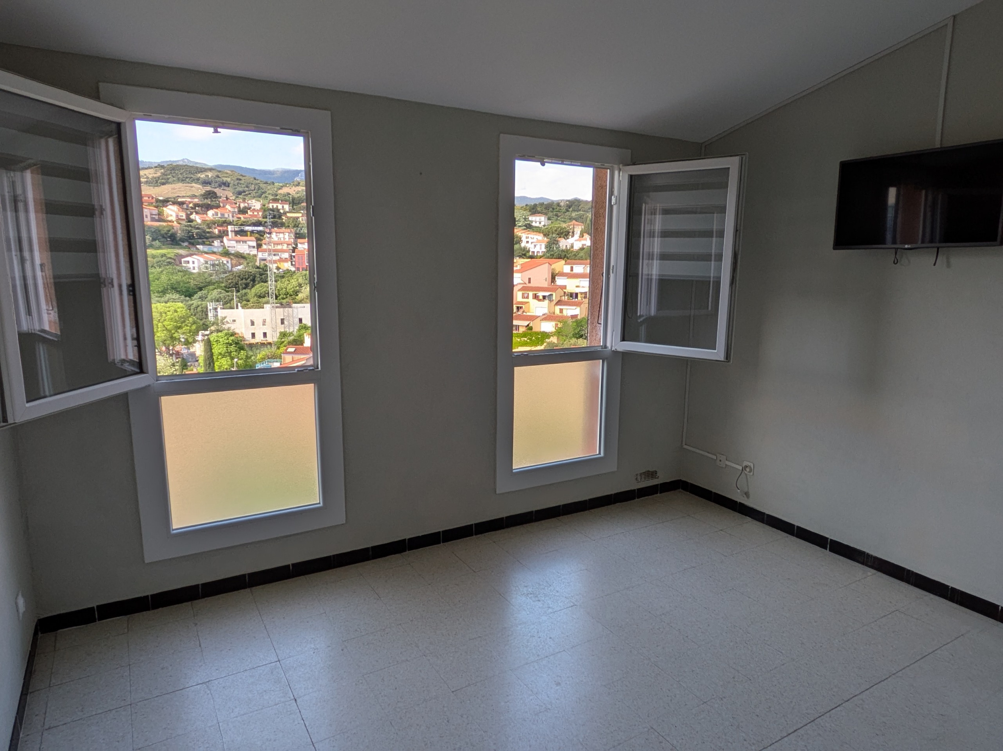 A proximité du centre-ville de Collioure, face au stade, appartement 2 pièces loué vide. Il se compose d'un séjour, coin cuisine (meubles, plaques, hotte, micro-ondes), placards, chambre et salle de bains avec douche et wc. Emplacement de parking privé et jouissance d'un petit jardin commun. Vue sur les collines