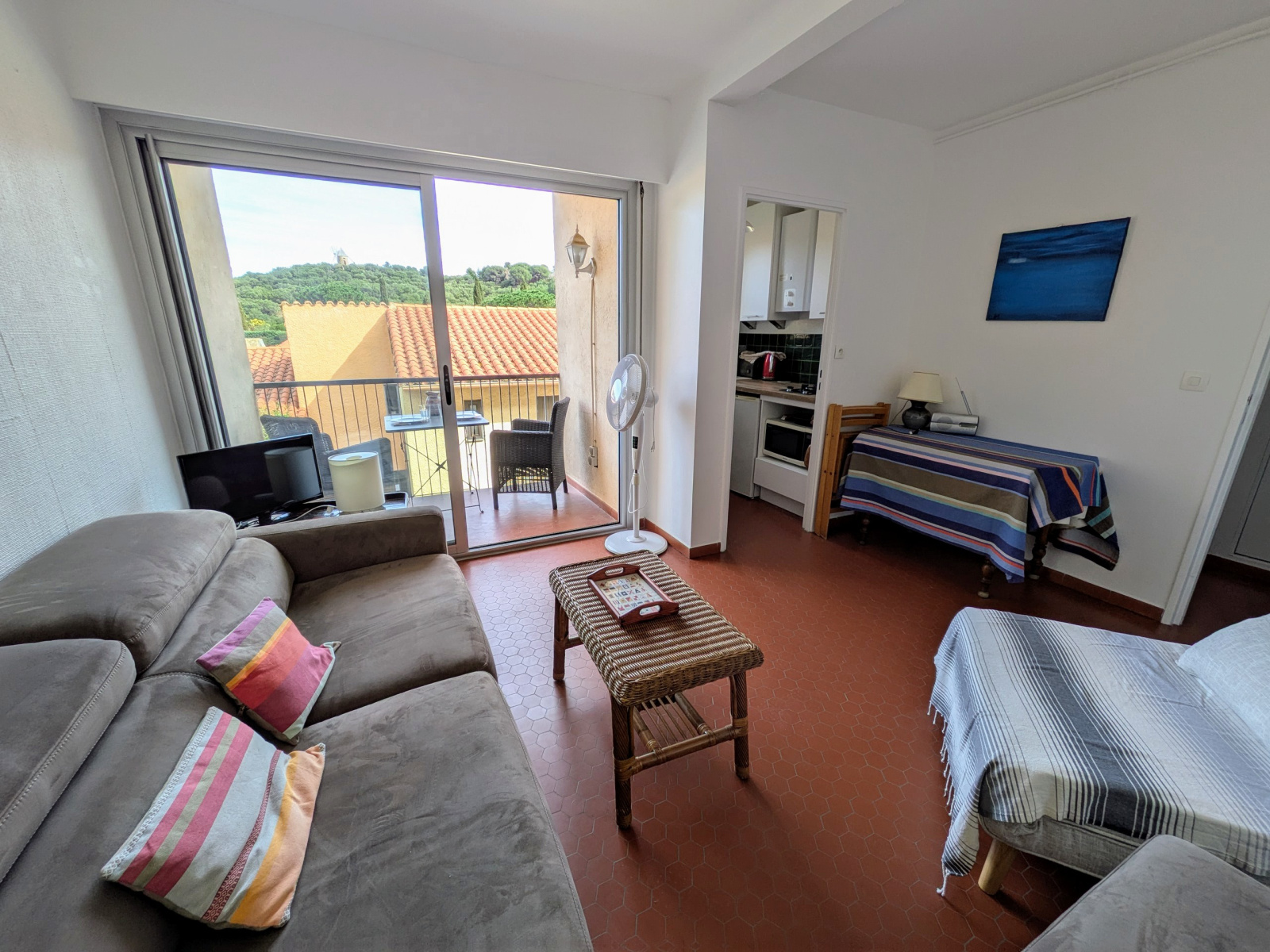 Un joli et agréable studio exposé est, comprenant un hall d'entrée avec placard, séjour ouvrant sur une loggia avec une vue dégagée, coin cuisine et salle de bains avec wc.