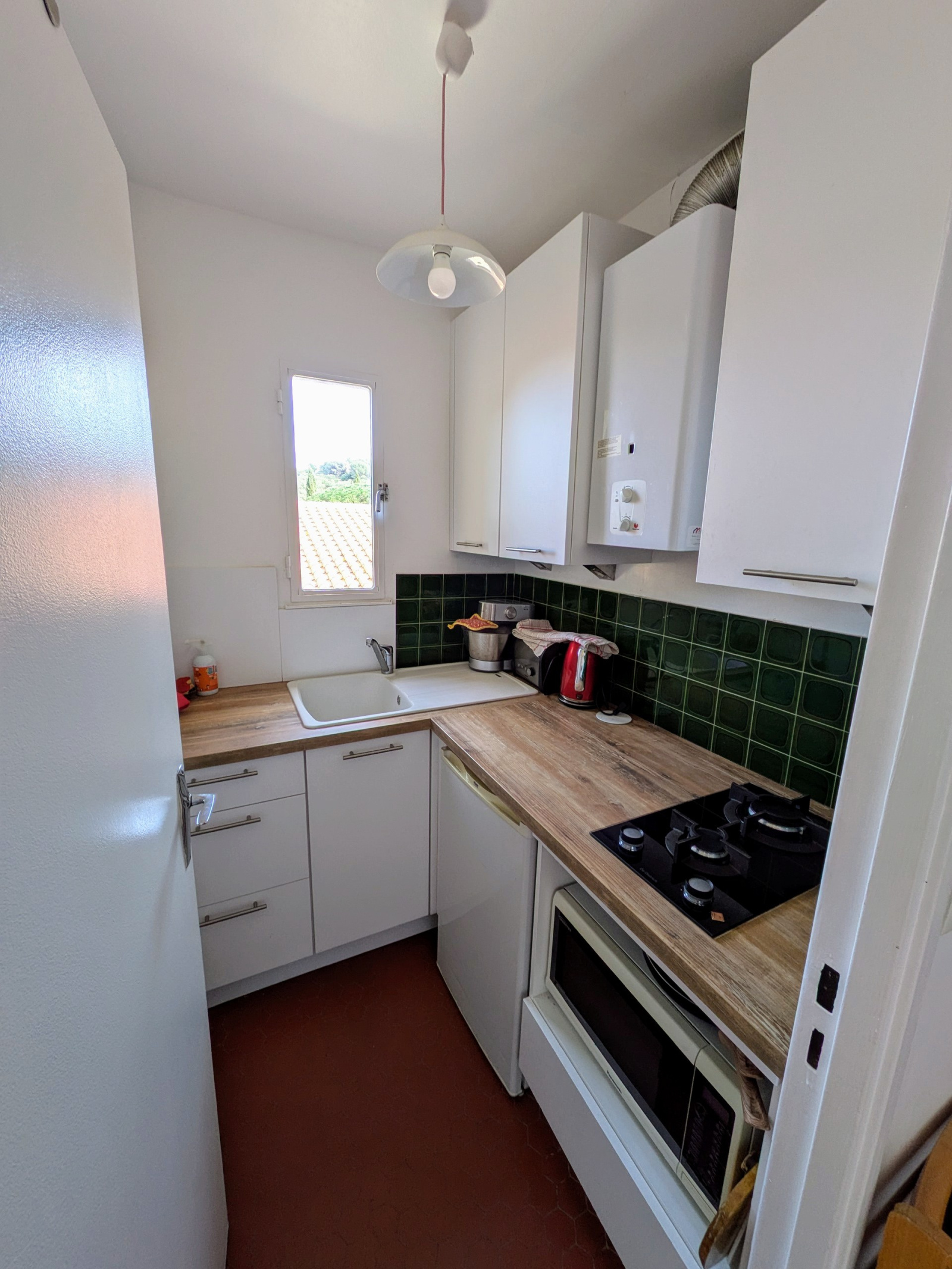 Le studio est situé au 2ème étage du bâtiment, il est meublé et en parfait état, il bénificie d'une situation au calme et d'une jolie vue sur la colline du moulin.